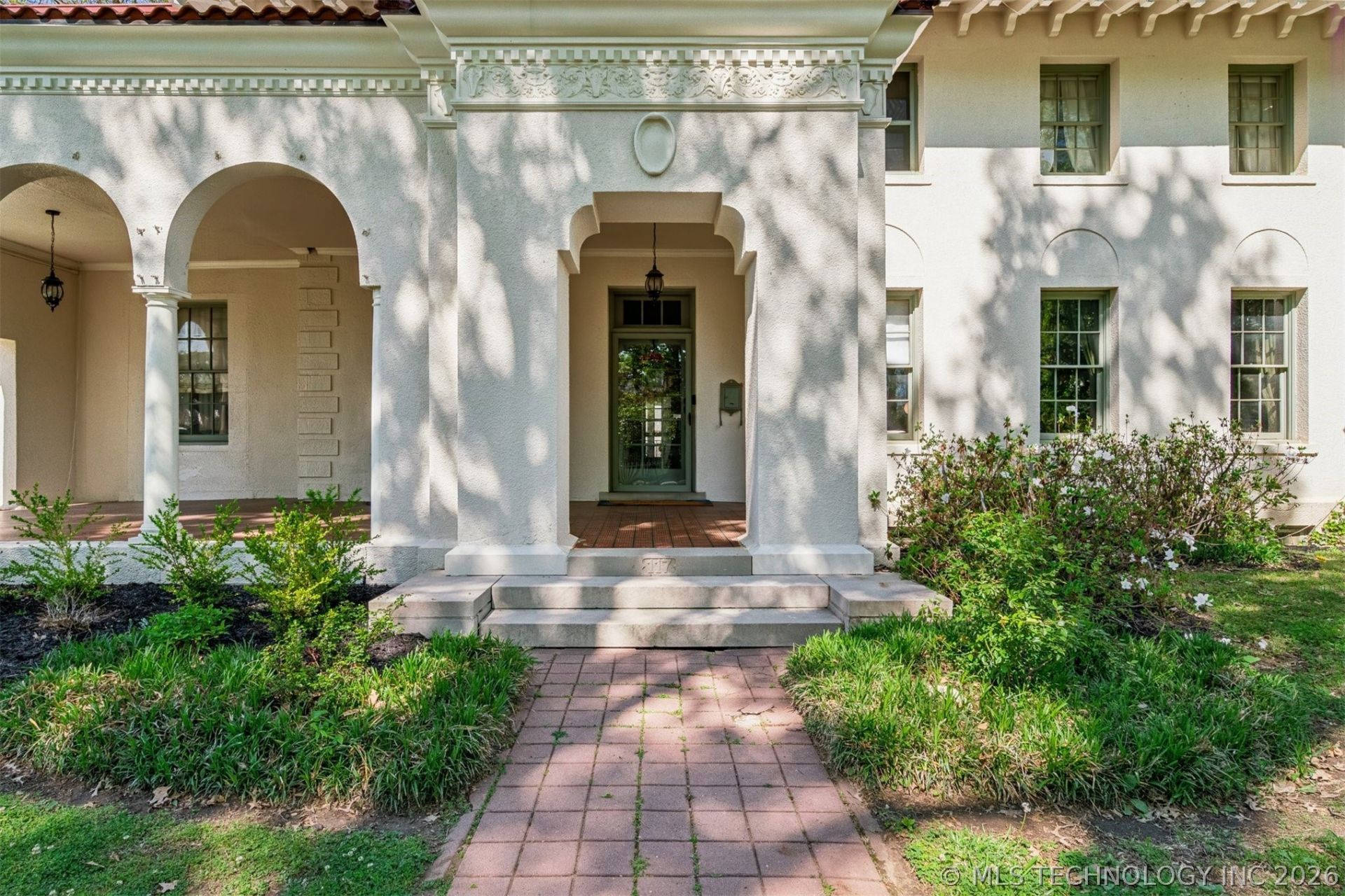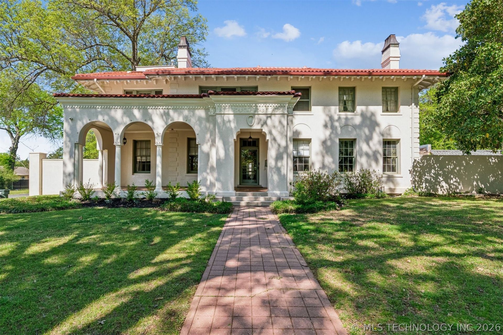Step into a piece of Oklahoma history with the iconic Rowsey Mansion, a 1920s masterpiece commanding a sprawling corner lot in Muskogee's historical Kendall District. This architectural treasure, framed by its signature 8-foot stucco privacy wall and gated entry, is well known for its breathtaking grand staircase that serves as the crown jewel of the soaring foyer. The estate seamlessly blends Roaring Twenties grandeur with modern versatility, featuring original hardwoods, ornate crown molding, and massive fireplaces. The property's appeal is further enhanced by a one-bedroom, one-bathroom apartment, providing an ideal setup for multi-generational living, a sophisticated home office, or premium guest accommodations. Outside, the private backyard oasis is centered around a refreshing in ground pool, offering an unparalleled opportunity to own a landmark legacy home that perfectly balances the historic elegance of a bygone era with the unique luxury of a private, gated retreat.