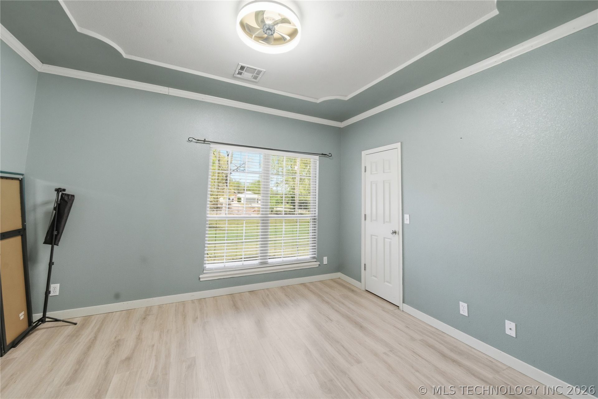 Gorgeous and move in ready 4 bedroom, 2.5 bath on 1 acre with a Pool! Located in the outskirts of Coweta but in city limits with a country feeling, this home sits in a peaceful setting backed up to a green belt. The 1 acre yard has a chain link that is fully fenced with a covered back patio and deck for sunbathing poolside. Wooden storage shed located in the backyard that comes with mower and covered RV/Motorhome storage for all your adventures. Featuring a 3 car garage for extra storage and a 6 person safe room located in the garage. This homes exterior is all brick and built in 2006 with open concept living room/kitchen with vaulted ceilings and a wood burning fire place. Formal dining and breakfast nook features each room with a vaulted ceiling and crown molding waiting on your custom touch! Master features a jet whirlpool bathtub with a his and hers bathroom and walk in closet with a covered personal private patio entry/exit. This home is ready for those seeking a slower pace without sacrificing comfort, this property provides the ideal balance of rural charm and everyday livability. This property is located just 2 minutes from downtown Coweta close to Central, on a bus route and 15 minutes to creek turnpike access. Home to be sold in As-Is condition.