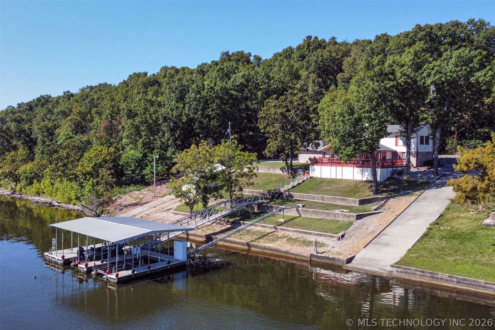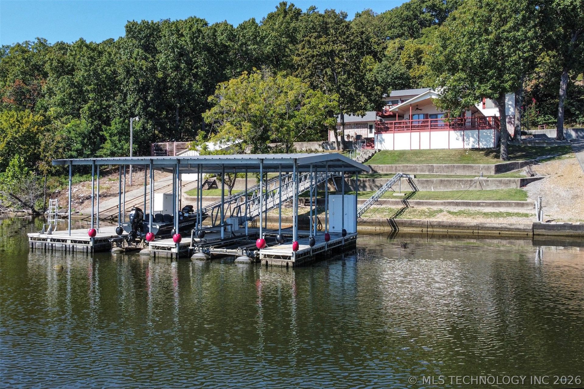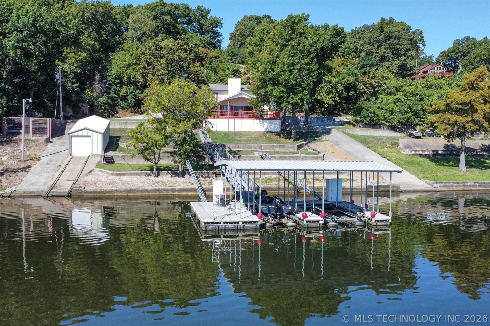 Life is better on the Lake! This exceptional waterfront home on Lake Hudson offers the perfect blend of comfort, space, and outdoor enjoyment! This well-loved property has been meticulously maintained by its owners since 1980! Enjoy direct lake access with a top of the line covered 2-slip dock featuring a boat lift, two all-weather storage stations, swim anrea w/ladder and a boathouse with an electric pulley system. Dock ramp has all new composite decking and a private boat ramp adds convenience for launching, while ample parking ensures there's plenty of space for guests and lake toys. Over 3,000sf in this 4 Bed/3 Bath home with 2 primary suites - one on each level and a dedicated media room! The main level welcomes you with a large kitchen equipped with stainless steel appliances, a generous dining area, and a utility room. The vaulted living room, anchored by a cozy wood-burning fireplace, offers amazing lake views and opens to an expansive partially covered deck-perfect for morning coffee, sunrise views over the water, or evening gatherings. Upstairs, you'll find a spacious primary suite, an additional oversized bedroom, and a media room complete with a wet bar and access to a private deck. Whether you're seeking a full-time residence, the ultimate weekend getaway, or an income opportunity as an Air B'N'B, this home offers endless opportunities to relax, entertain, and make lasting memories on the water! Lake Hudson is known for not only recreational activities but is also popular for bass, catfish, perch and crappie fishing. Like new bass boat and home furnishings are negotiable! Only 20 mins from the Mid-America Industrial Park and 1 hour from Tulsa. Come see your private lake paradise today!