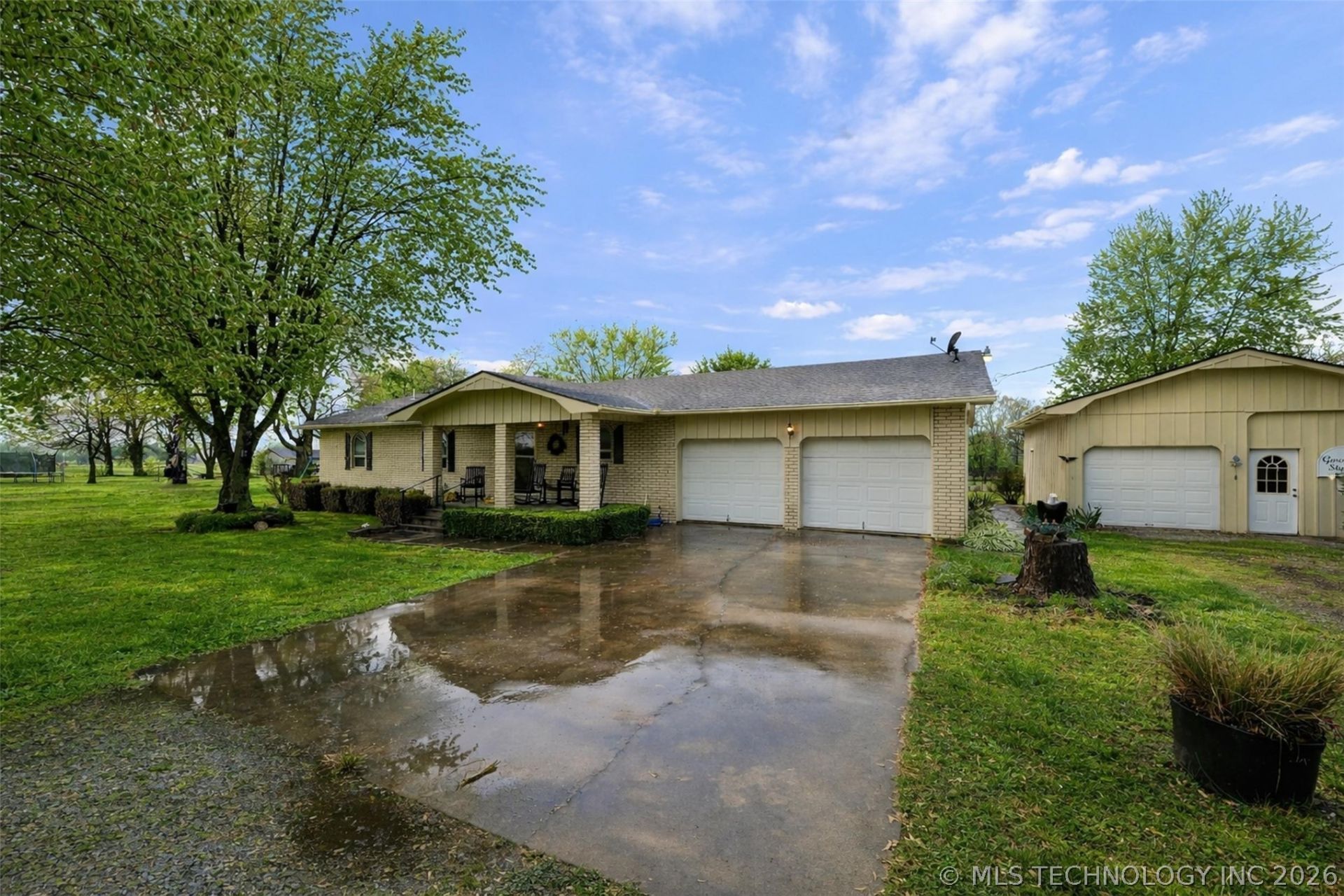 Charming and welcoming-this beautifully maintained 3-bedroom, 2-bath home offers the perfect blend of comfort and space, all set on 4.1 acres just off the highway for easy access and convenience. Featuring two spacious living areas, there's plenty of room to relax, entertain, or gather with family and friends. The property is ideal for those seeking a little extra room to spread out, with a barn, shed, and a fully finished detached garage/shop complete with electric and water-perfect for hobbies, projects, or additional storage. Enjoy the outdoors in the well-kept yard, offering endless possibilities for gardening, entertaining, or even starting your own hobby farm. The home's brick exterior and attached 2-car garage add both durability and curb appeal. This property truly offers convenient access with a feel of country living-don't miss your chance to make it yours! Listing agent related to seller.