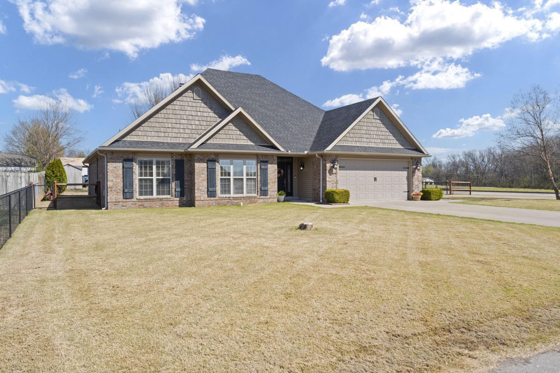 Located on a large corner lot in Littlegate, this well-maintained home offers a great combination of space, quality finishes, and a convenient location.You enter through a wide, welcoming entry that leads into a spacious living room with vaulted ceilings, crown molding, a fireplace, and beautiful engineered hardwood flooring that continues through the main living spaces and the primary bedroom. The two guest bedrooms feature carpet, while the kitchen and bathrooms are finished with tile.The kitchen offers plenty of cabinet and counter space, granite countertops, stainless steel appliances, and a large walk-in pantry. Just off the kitchen, you'll find a dining area and a custom built-in desk space. The laundry room is also located off the kitchen and includes a sink for convenience. Major updates include a newer roof and efficient systems, and the home systems are fully electric with good insulation to help keep utility costs low and consistent. The backyard is fully fenced and features a small shed and a patio with a pergola, offering a great space to relax or entertain. Located right in town, you're just minutes from the hospital, post office, dining, shopping, and everyday essentials. An additional lot is available separately, directly behind the home on the corner of 9th and Shundi, with city water and sewer in place and ready to build. Well maintained, clean, and move-in ready, this is a great opportunity in Littlegate.